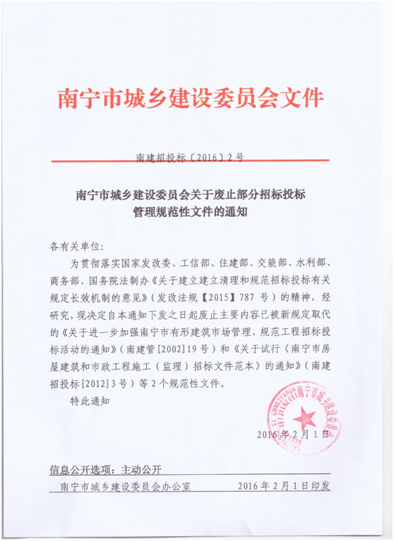 下一篇:南寧市城鄉建設委員會(huì )關(guān)于調整變更中標通知書(shū)事項和建筑業(yè)企業(yè)誠信庫誠信卡解卡鎖卡事項管理工作的通知